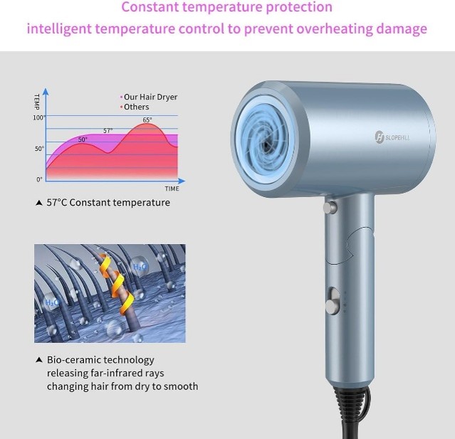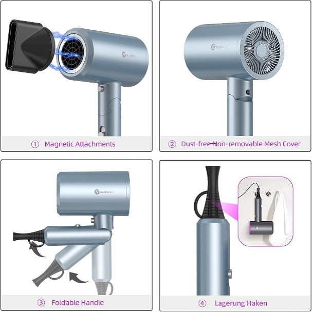 💡 Lumière bleue ionique : réduit les frisottis, protège la fibre capillaire et laisse les cheveux brillants